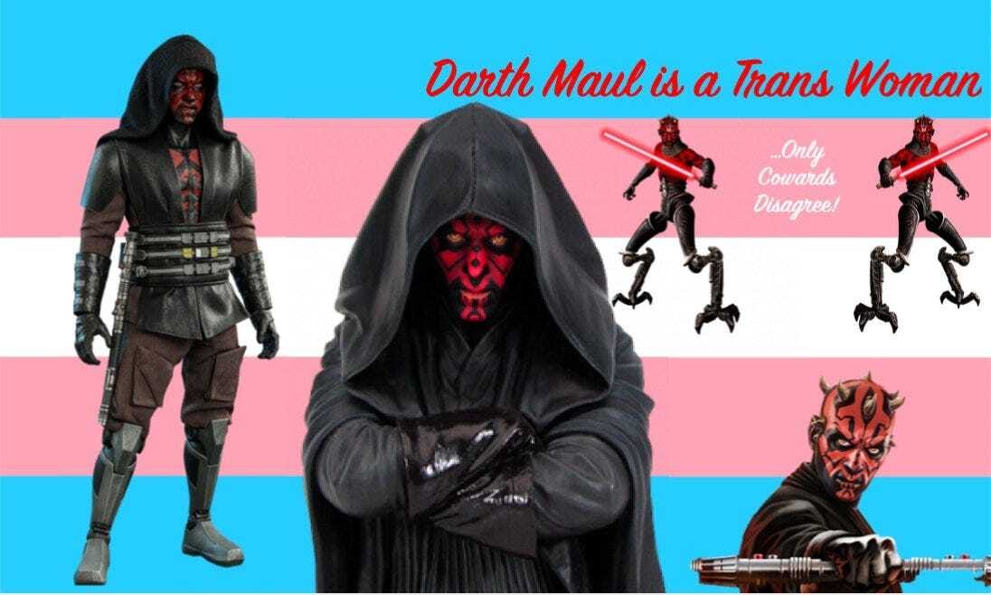 There's pretty much nothing to support this in the canon. Maul is known as a male character, he/him pronouns are used consistently in all iterations of the character. As an agender person I tend to queer a lot of characters like this on instinct, but Maul is the one that I hold so close to my heart. Maybe it's because as soon as I laid eyes on Maul something in my little kid brain flashed "Lady Woman" and it never stopped flashing. But, every time I learn a new scrap of info about Maul my confirmation bias warps it to fit my idea of her as a woman. And frankly? Transwoman Maul is the most interesting thing the prequels ever gave us.