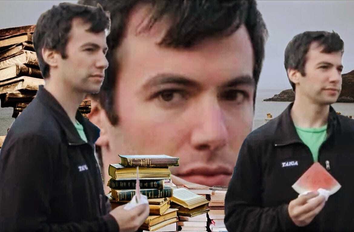 What if the Joker spoke in a monotone, moved as if the air around him is viscous, and dressed like an immediately forgotten Gap campaign from 1997? You’d have Nathan Fielder, whose Joker crimes include recreating a Nazi war room to express his barely contained rage and feeling of impotence at the domino effect of Paramount+ Germany censoring his work. A corporate choice that led to a global erasure of an entire episode actually dedicated to eradicating Holocaust denial. He glares through the war room’s recreation leaded glass window, fuming at the claim of wanting to reduce anti-Semitism and his own apparent inability to put his foot down out of fear of professional repercussions. Reflecting on the failure of the gentle prodding in his jovial and accommodating inquiry emails, he watches a gaggle of actors perform an atmospheric loop of action in the courtyard below. The performers, dressed as jack booting officers sporting sky blue Paramount+ brassards on their arms, bark orders in German and run drills. The Curse is never getting renewed.